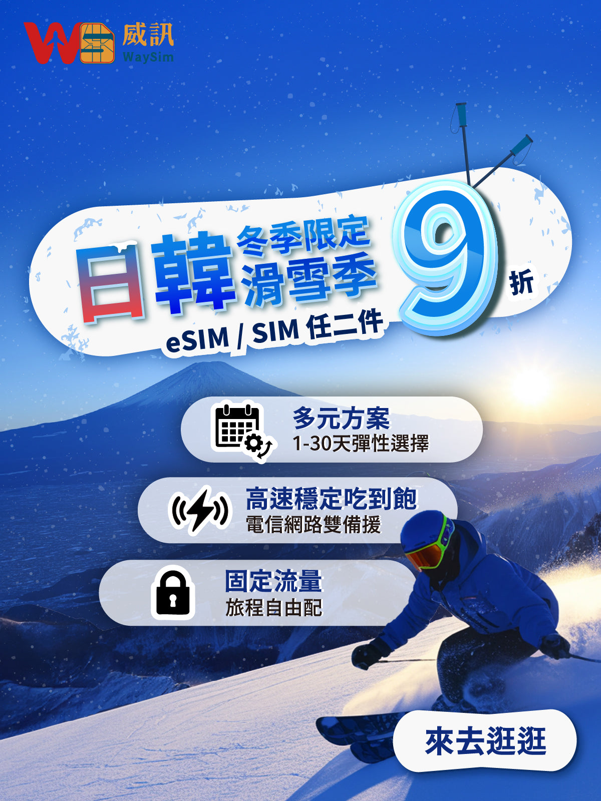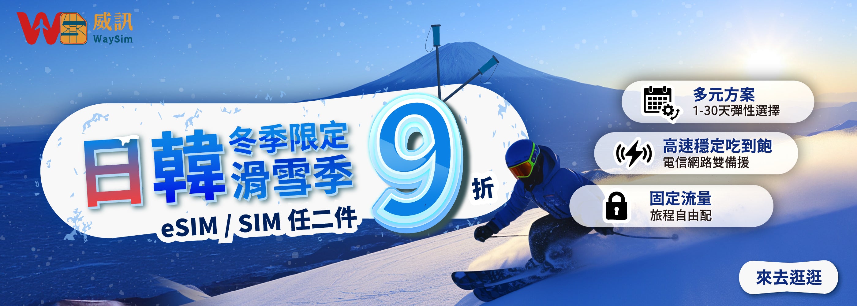 WaySim威訊提供多種選擇,無論是按日流量、固定流量,還是吃到飽方案通通都有,一次滿足您的所有上網需求。